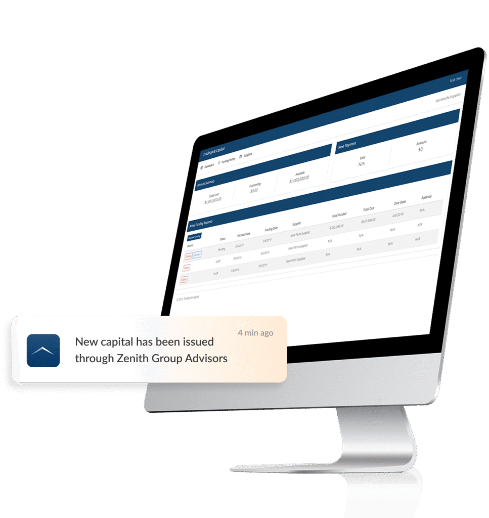 Start Your Funding RequestSubmit an application for credit review and initial assessment. Zenith’s team analyzes your supplier payment structure, and identifies optimal working capital opportunities.